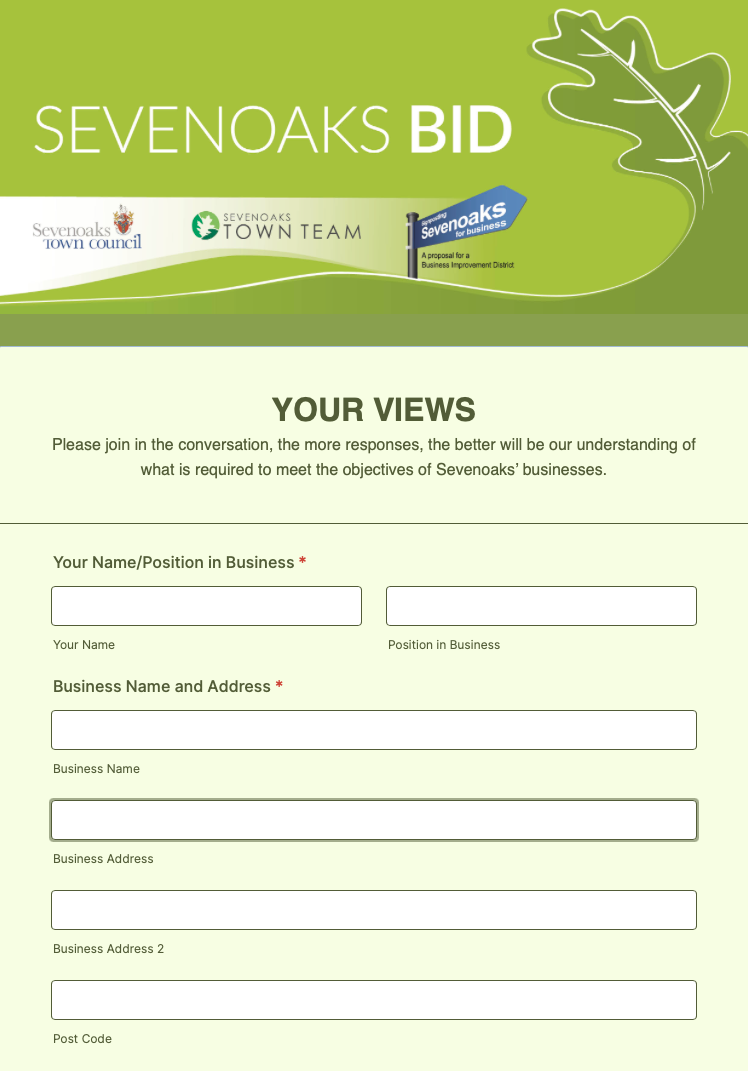 Please join in the conversation, the more responses, the better will be our understanding of what is required to meet the objectives of Sevenoaks’ businesses. The BID area takes in the whole town and includes all types of business from retail to health & wellbeing, from industrial to transport and from pub to office.